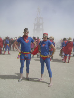 I previously posted that Chris and I were making Superman costumes for Burning Man. In honour of the Metropolis theme, a world record breaking gathering of people dressed as Superman was scheduled for noon on Burn Day and we didn't want to miss out on the fun.